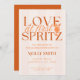 Celebrate bubbly beginnings with this “Love at First Spritz” design—featuring playful modern text in vibrant orange tones and inspired by everyone’s favorite fizzy cocktail. Perfect for bachelorette weekends, bridal showers, or engagement celebrations with a sunny, citrusy vibe.