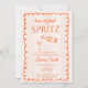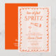 Cheers to the bride-to-be! This fun and festive "Love at First Spritz" bridal shower invitation sets the party mood from the very first glance. A bold burnt orange scallop squiggle border frames a vintage-style champagne pouring illustration, making this design as bubbly and celebratory as the event itself.