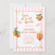 Introducing our enchanting 'Love At First Spritz' bridal shower invitation, designed to make your special day even more memorable. This invitation features an orange hand-drawn doodle frame on a soft pink striped background. Adorning the frame are watercolor oranges and a spritz glass, as well as whimsical doodle orange slices, adding a touch of playful elegance to the design. The whimsical handwritten font beautifully complements the artistic frame, creating a cohesive and charming look that will captivate your guests from the moment they receive it.