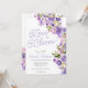 This elegant “Love in Bloom” bridal shower invitation features a soft arrangement of hand-painted purple wildflowers in lavender, lilac, and fresh green tones. The delicate floral placement along the edges creates a light, airy frame that keeps the layout refined while adding a romantic garden feel. The flowing script typography pairs beautifully with the watercolor florals, giving the design a timeless and feminine look that works effortlessly for spring and summer celebrations. The balanced composition keeps all event details easy to read while still feeling decorative and elevated.