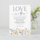 Celebrate the bride-to-be with this romantic “Love Is In Bloom” summer bridal shower invitation featuring a wbite background, elegant black modern calligraphy, and vibrant watercolor wildflowers in blue, yellow, blush pink, purple, and cream. Delicate butterflies flutter along the bottom for a whimsical touch. Perfect for garden, boho, rustic, or floral-themed bridal showers in spring or summer. Easily customize the text to suit your event details.