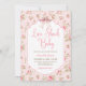 Amor Shack Baby Girl Chá de fraldas Convite. Fita cor-de-arco cor-de-rosa embebida em tonalidade, delicada, com rosas femininos de cor-de-água. Doce como a mãe a ser. Letras de caligrafia soletra Love Shack Baby.