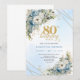 Convites Lovely Dusty Blue Floral Gold 80th Birthday Invite