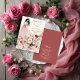 This invitation stands out for its sophisticated watercolor effect, bringing an artistic, soft, and ethereal feel to the design. The illustration features a full-body woman in a graceful model pose, with dark hair and a delicate, refined presence. She wears a pink tulle dress adorned with flowers that appear to scatter softly in shades of pink, red, and white, accompanied by green leaves that add freshness and balance. The front background is white, allowing every brushstroke to be seen clearly, while the back of the invitation is red, adding warmth and contrast that elegantly complements the illustration without interfering with its artistic details. Every element conveys charm, femininity, and a romantic aura, making this invitation both exquisite and visually captivating.