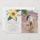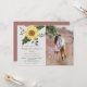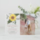 Girassol e verde russos e gigantes em combinação com fundo bege e e trendy terracotta. Convite de casamento elegante, moderno e único com foto personalizada do casal.