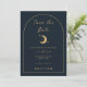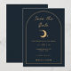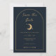 Concebido para combinar com a nossa Coleção Celestial Mystic, este cartão de convite personalizável "save the date" apresenta elementos celestiais dourados deslumbrantes num fundo azul-marinho escuro com uma borda em arco. Para personalização mais avançada deste design, por exemplo, alterar o layout, a fonte ou o tamanho do texto, clique no botão "PERSONALIZAR" acima. Por favor, entre em contato comigo para qualquer dúvida!