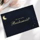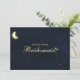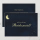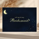 Convite Lua Celestial Estrelas Você Será Minha Dama de Honra. Este design apresenta luzes de estrelas cintilantes com uma lua crescente brilhante no céu noturno estrelado.