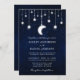 Convite de casamento celestial. Céu azul de água com estrelas e a lua. Luzes de cordas. Bordas feridas.