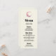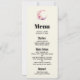 Menu de eventos com uma bela ilustração com uma lua rosa e púrpura da lua. Bonito flores silvestres cor-de-rosa e amarelas adornam este corpo celeste.