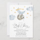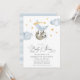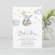 Convites Lua e estrelas Chá de fraldas azul de bebê animal