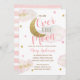 Convites Lua e estrelas Chá de fraldas Dourado rosa-d'água