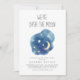Esta menina da Lua e das Estrelas que estamos sobre o convite da Lua é perfeita para um simples chá de fraldas. A design branca moderna apresenta uma forma de nuvem azul-aquática marinho com uma lua e estrelas amarelas com um quarto de lua amarela.