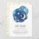 Este convite à lua e às estrelas neutro em termos de gênero é perfeito para um simples chá de fraldas. A design branca moderna apresenta uma forma de nuvem azul-aquática marinho com uma lua e estrelas amarelas com um quarto de lua amarela.