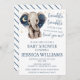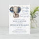 A lua celestial de elefante de aquarela e as estrelas com a mensagem brilhando e brilhando, o convite para o chá de um bebê.