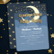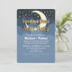 Bem-vindos aos seus entes queridos para celebrar a chegada do seu pequeno pacote de alegria com este convite para Chás de fraldas de moda. Este Convite apresenta uma design de lua, estrelas e nuvens com o texto "Adeus, Sono e Olá Bebê" com um padrão de estrelas douradas nas costas. NOTA: O Dourado deste item NÃO é folha de alumínio real.