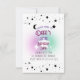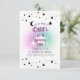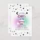 Este convite elegante e único apresenta um design branco simples com belos acentos de lua e estrelas em preto. No centro, um contorno de uma estrela brilha em roxo e verde, adicionando um toque de magia caprichosa ao seu evento especial. Perfeito para qualquer ocasião que exija um toque de beleza celestial.