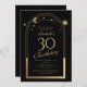 A Celestial Black Sun Moon Astronomy aniversário de 30 anos Invirs apresenta um elegante sol dourado, lua e estrelas com um quadro de ouro sobre fundo negro. Dentro é a sua informação de convite de 30 anos. Personalize editando o texto nas caixas de texto. Projetado para você pelo Evco Studio www.zazzle.com/store/evcostudio