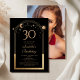 A Astronomia da Lua Negra Celestial, Astronomia da Lua Negra, Foto de aniversário de 30 anos, apresenta um elegante sol dourado, lua e estrelas com um quadro de ouro sobre fundo negro. Dentro é a sua informação de convite de 30 anos. Ao contrário, adicione sua foto favorita. Projetado para você pelo Evco Studio www.zazzle.com/store/evcostudio