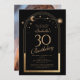 A Astronomia da Lua Negra Celestial, Astronomia da Lua Negra, Foto de aniversário de 30 anos, apresenta um elegante sol dourado, lua e estrelas com um quadro de ouro sobre fundo negro. Dentro é a sua informação de convite de 30 anos. Ao contrário, adicione sua foto favorita. Projetado para você pelo Evco Studio www.zazzle.com/store/evcostudio