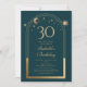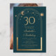 A Astronomia da Lua Solar Dourada Celestial Astronomy aniversário de 30 anos Photo Invtions apresenta um elegante sol dourado, lua e estrelas com um quadro de ouro sobre um fundo verde-floresta. Dentro é a sua informação de convite de 30 anos. Ao contrário, adicione sua foto favorita. Projetado para você pelo Evco Studio www.zazzle.com/store/evcostudio