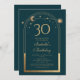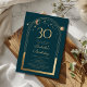 A Celestial Green Sun Moon Astronomy aniversário de 30 anos Invances apresenta um elegante sol dourado, lua e estrelas com ouro sobre fundo verde-floresta. Dentro é a sua informação de convite de 30 anos. Personalize editando o texto nas caixas de texto. Projetado para você pelo Evco Studio www.zazzle.com/store/evcostudio