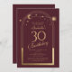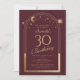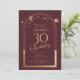 A Celestial Red Dourada Sun Moon Astronomy aniversário de 30 anos Invirs apresenta um elegante sol dourado, lua e estrelas com um quadro de ouro sobre um fundo cor-de-rosa profundo. Dentro é a sua informação de convite de 30 anos. Personalize editando o texto nas caixas de texto. Projetado para você pelo Evco Studio www.zazzle.com/store/evcostudio