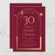 A Celestial Red Dourada Sun Moon Astronomy aniversário de 30 anos Invices apresenta um elegante sol dourado, lua e estrelas com um quadro de ouro sobre fundo vermelho. Dentro é a sua informação de convite de 30 anos. Personalize editando o texto nas caixas de texto. Projetado para você pelo Evco Studio www.zazzle.com/store/evcostudio