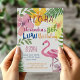 Convites Luau Havaiano Festa de Aniversário Flamingo