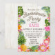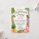 Tema russo do luau de praia com floral tropical apresentando plumeria, hibisco e cartão de convite para festas de solteira de abacaxi.