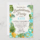Tema russo do luau de praia com floral tropical apresentando plumeria, hibisco e cartão de convite para festas de solteira de abacaxi.