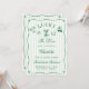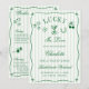 This editable bachelorette invitation features a chic green and white striped background, classic lucky symbols like dice, horseshoes, martini glasses, cherries, and four-leaf clovers, and elegant script typography that feels elevated yet lighthearted. The front announces the celebration in a fun, whimsical way, while the back is thoughtfully designed as a complete bachelorette weekend 4-day itinerary, allowing guests to see the full schedule at a glance — perfect for destination trips and group travel planning.