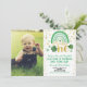 [Todo o texto é editável, exceto Lucky ONE] Convite de aniversário bonito no estilo. Tema: Shamrock & Rainbow. Primeiro Aniversário. Estilo: bonito, fofo, elegante. Cores: verde, branco, ouro. Gráficos: Arco-íris, shamrock, chapéu verde, ouro falso.