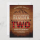 Um convite para o segundo aniversário do lumberjack com um fundo de madeira quente e uma silhueta branca de montanha. A palavra 'Dois' é feita numa xadrez de búfalo colorida e adiciona um pop de cor divertido. Podemos personalizar isso para qualquer idade, apenas perguntar:)