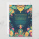 A frente do convite apresenta um fundo escuro rico que contrasta lindamente com amarelos vibrantes e turquesas, criando uma atmosfera impressionante e festiva. Na parte inferior, uma lâmpada Diya de solteiro solidamente detalhada brilha intensamente, servindo de ponto focal da design. Os amarelos vibrantes e a turquesa são complementados por delicados elementos cor-de-rosa, acrescentando um toque de elegância e brincadeira. Padrões ornamentais hindus tecem através do design, melhorando o encanto tradicional e adicionando profundidade. Os detalhes do evento são exibidos em um roteiro sofisticado que se harmoniza com as cores ricas. A parte de trás do cartão continua o tema negro, dando espaço para textos personalizáveis e desejos de Diwali, emoldurados pelas mesmas matizes vibrantes e padrões intrincados. Este design oferece uma combinação perfeita de tradição e celebração vibrante