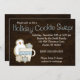 Convites da troca do biscoito do feriado. Caracterizando um biscoito bonito do boneco de neve, biscoitos do floco de neve e uma caneca de café em um fundo marrom. Um design lunático azul, do branco e do marrom para seu biscoito do Natal troca o partido! Doodles de Scrappin do © das ilustrações do biscoito em www.scrappindoodles.com