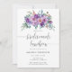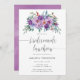 Flores roxas em um convite para almoçar mansas de buquê pintadas à mão, desenhadas para serem rápida e facilmente personalizadas para o seu dia especial.