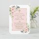 Design de cartão elegante com flores rosadas e folhas verdes, cor-de-rosa delicada e cor-de-água, uma cruz dourada falsa, forma rosa com falso quadro dourado, divisor floral, sobre fundo branco. Nas costas, buquê de flores brancas sobre fundo branco. Use a ferramenta Personalizar para adicionar suas informações, alterar fontes, cores da fonte. Para obter itens correspondentes, visite minha nova coleção de celebrações Baptism/Christening.