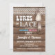 Lures ou Lace gender revelam design com isca de fundo de madeira rustica e gráficos de rendas.