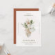 Esses convites de casamento de vassouras apresentam uma composição abstrato de vários botânicos tropicais - folhas verdes de palma, grama de pampas, flores e samambaias, e até mesmo sotaques de ouro falsos. Tudo aparece em um fundo de aparência neutra e suave, com uma cor de ferrugem de terracota no verso e um layout de texto moderno.