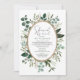 Este elegante convite botânico temático apresenta uma bela aquarela desenhada à mão, eucalipto verde e falso fundo de ouro