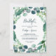 Este exuberante verde e eucalipto babyq convite é perfeito para um chá de fraldas elegante de casais de quintal. O design botânico moderno apresenta um belo eucalipto azul-aquarela e folhas verdes.