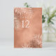 Uma paleta colorida em tons de terra cotta, cobre e ferrugem; quadros geométricos cintilantes e layouts elegantes de design, fornecem a base para esta excitante suíte de casamento. Quer você esteja planejando um casamento de destino ou ficando perto de casa, este delicado conjunto de design de folha de palma faz uma escolha atraente. A placa de papel de coordenação mostrada aqui fornece uma modelo para adicionar facilmente o número da sua tabela. Procure ID956 para ver outras peças e opções de cor para este conjunto.