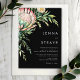 Este elegante design de convite para o casamento apresenta florais lindos em fundo com tipografia clássica. Esta design é a escolha perfeita para um casamento rústico mas elegante no final do verão ou no outono.