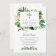 Convites Lush Tropical Foliage Dourada Cross Boy Baptism