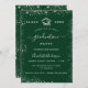 Um convite moderno e elegante para a festa de formatura. Um fundo verde decorado com falso brilho prateado, brilhos. Personalize e adicione um nome, ano e detalhes.