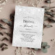 Um chá de panela moderno, elegante e minimalista. Fundo metálico de aspecto fino prateado decorado com poeira falsa brilhante. Personalize e adicione um nome e detalhes da parte. Letras pretas coloridas.