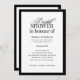 Estes convites de chá de panela elegantes e velhos no estilo do dinheiro apresentam uma dramática fronteira preta e um design de texto preto e branco. Há uma mistura de texto negro clássico e caligrafia moderna para uma design clássica e minimalista perfeita para seu eterno, chá de casamento formal. A ortografia "em honra" é correta para inglês britânico, canadense, neozelandês e australiano (há outra versão com a ortografia inglesa americana aqui no meu compro).