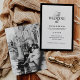 Estes convites de casamento elegantes e antigos ao estilo do dinheiro apresentam uma fronteira negra dramática e um design de texto preto e branco. Há uma mistura de texto preto clássico e caligrafia moderna para uma design clássica e minimalista perfeita para o seu eterno, casamento formal. Sua foto favorita aparece atrás.