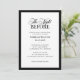 Estes convites de janto de ensaio elegantes e antigos ao estilo do dinheiro apresentam uma fronteira negra dramática e um design de texto preto e branco. Há uma mistura de texto negro clássico e caligrafia moderna que diz "a noite anterior", para uma design clássica e minimalista perfeita para o seu eterno, casamento formal.
