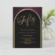 Um elegante convite de 50 anos. Um fundo preto e arrojado com um arco de ouro na frente.